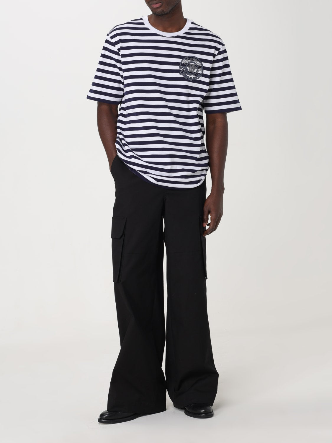 Men's Versace Multicolor Striped Cotton Crewneck T-Shirt with Contrasting Logo