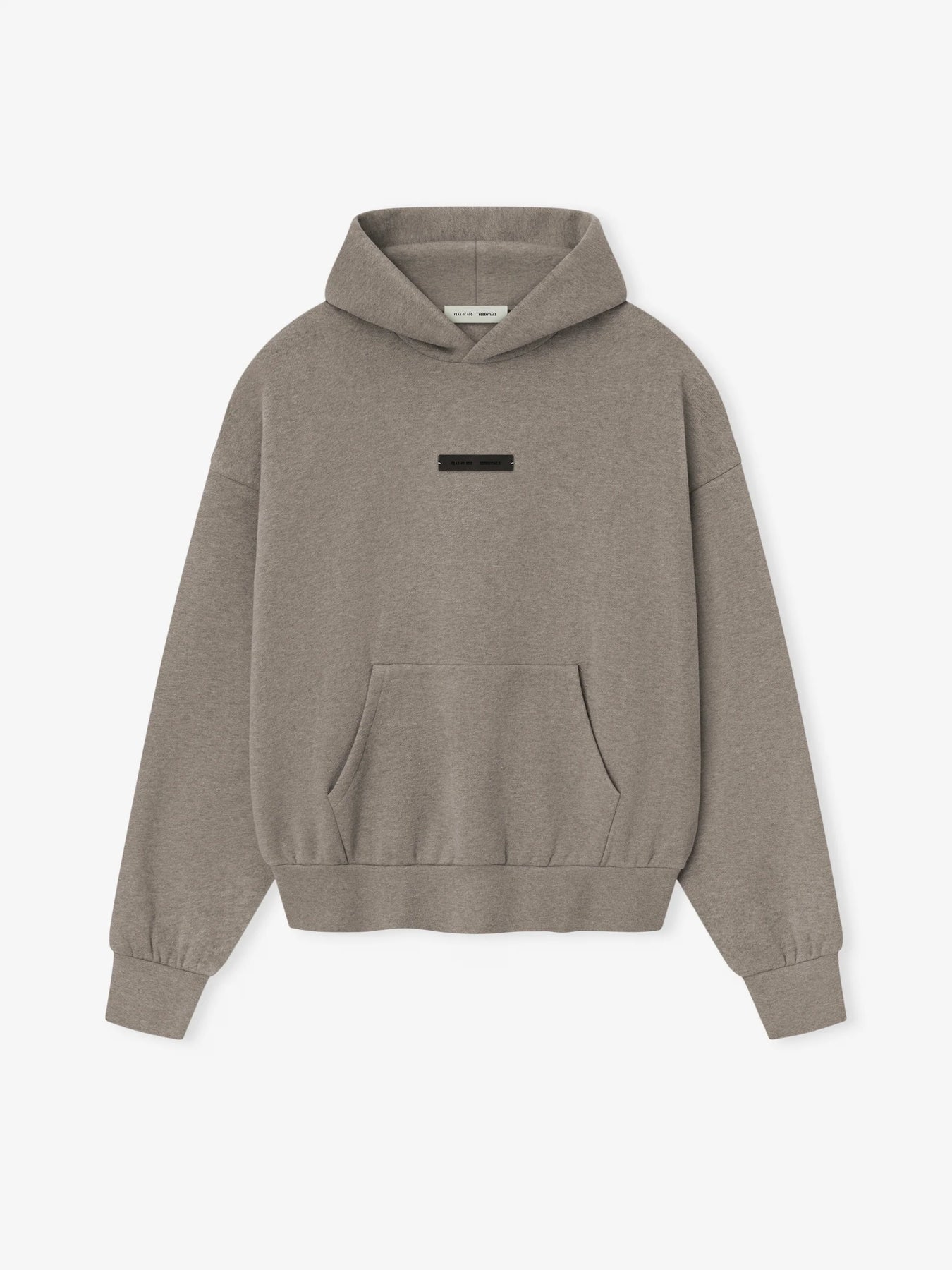 The Classic Hoodie is made from 380gsm core fleece to provide ideal comfort and structure. The hoodie features a classic fit with signature Fear of God relaxed proportions. A new "Essentials Fear of God" beveled metallic logo is branded across the back. Details include a double-layer hoodie, kangaroo pocket, rib-knit cuffs and waist-hem. A Fear of God Essentials rubberized label is stitched on the hood and sleeve