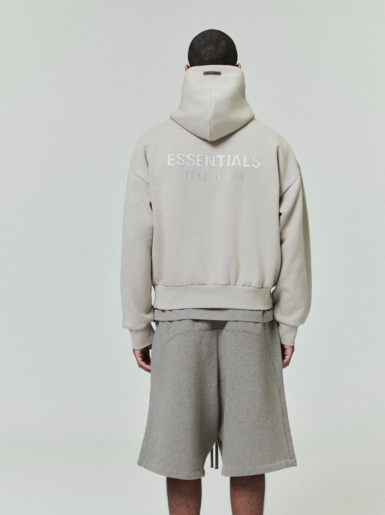 The Classic Hoodie is made from 380gsm core fleece to provide ideal comfort and structure. The hoodie features a classic fit with signature Fear of God relaxed proportions. A new "Essentials Fear of God" beveled metallic logo is branded across the back. Details include a double-layer hoodie, kangaroo pocket, rib-knit cuffs and waist-hem. A Fear of God Essentials rubberized label is stitched on the hood and sleeve