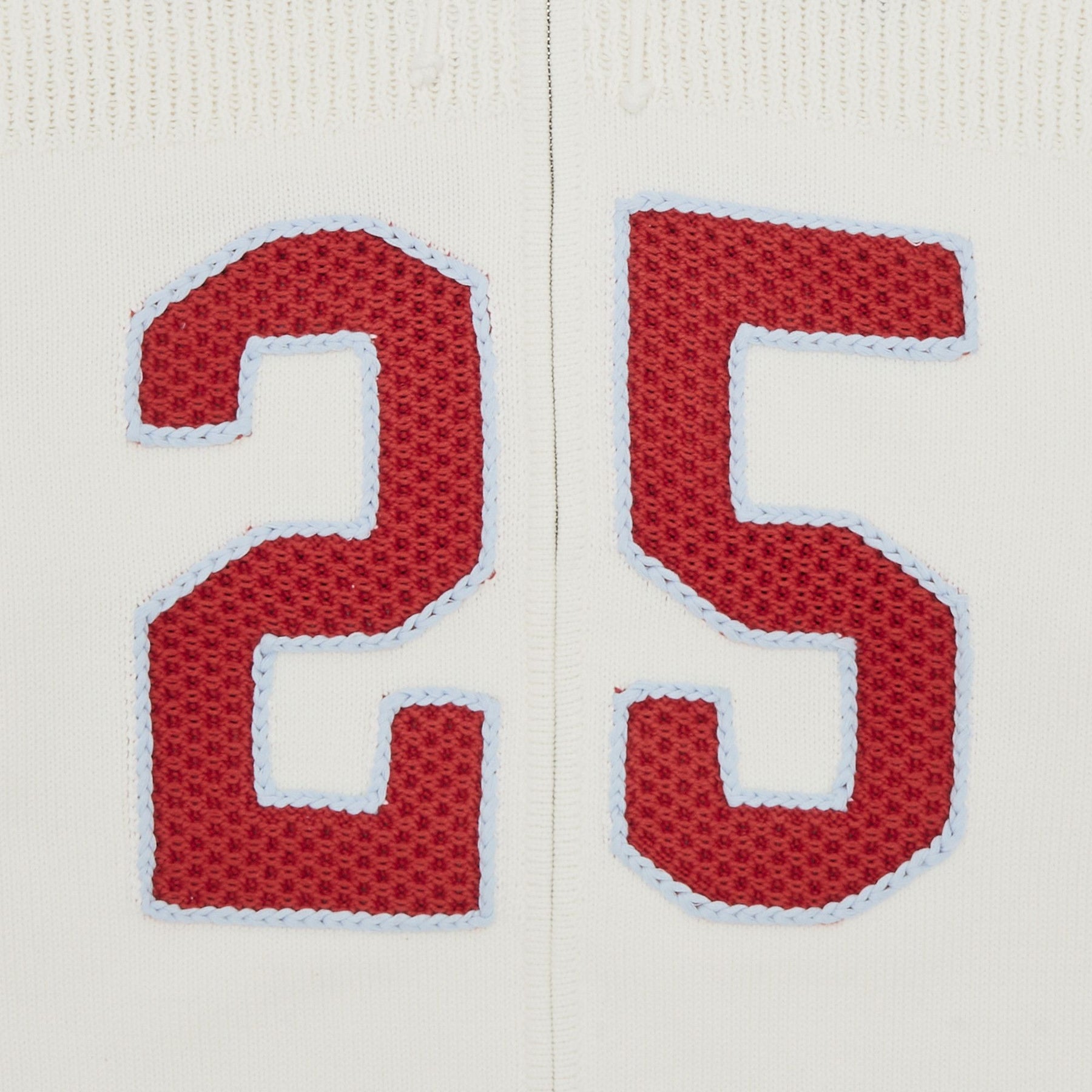 | Graphic Details | Embroidered '25' and 'S' Logo, Striped Sleeves |
