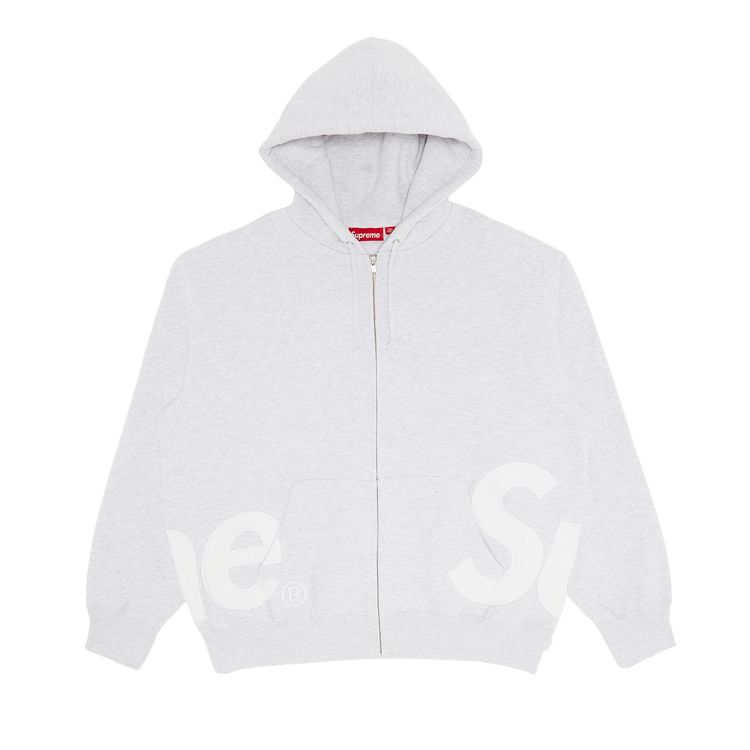 Supreme Big Logo Zip Up Hooded Sweatshirt Ash Grey
